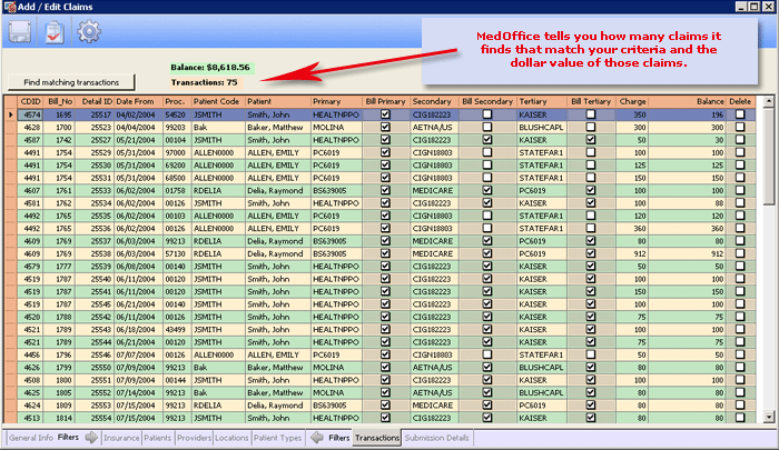filtering, MedOffice automatically finds all outstanding claims that match your
