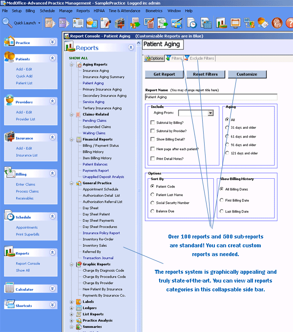 MedOffice includes a huge number of professionally- formatted reports and sub-reports as standard feature. You can also customize reports as needed! Here are some sample reports:
